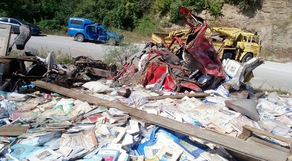 Kazada kamyon hurdaya dönerken üzerindeki binlerce okul kitabı etrafa saçıldı. Mescit ise tamamen yıkıldı.